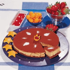 - تُخبز الكعكة في الفرن على حرارة متوسطة 175 درجة مئويّة لمدّة تتراوح بين 50 و55 دقيقة. تُترك الكعكة في الصينية قليلاً لتبرد قبل قلبها.